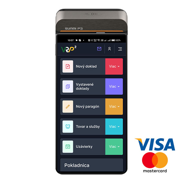 ExVAN miniPOS P3 VRP s platobným terminálom – inteligentná Virtuálna registračná pokladnica novej generácie. Možnosť využívania platieb kartou na zariadení.